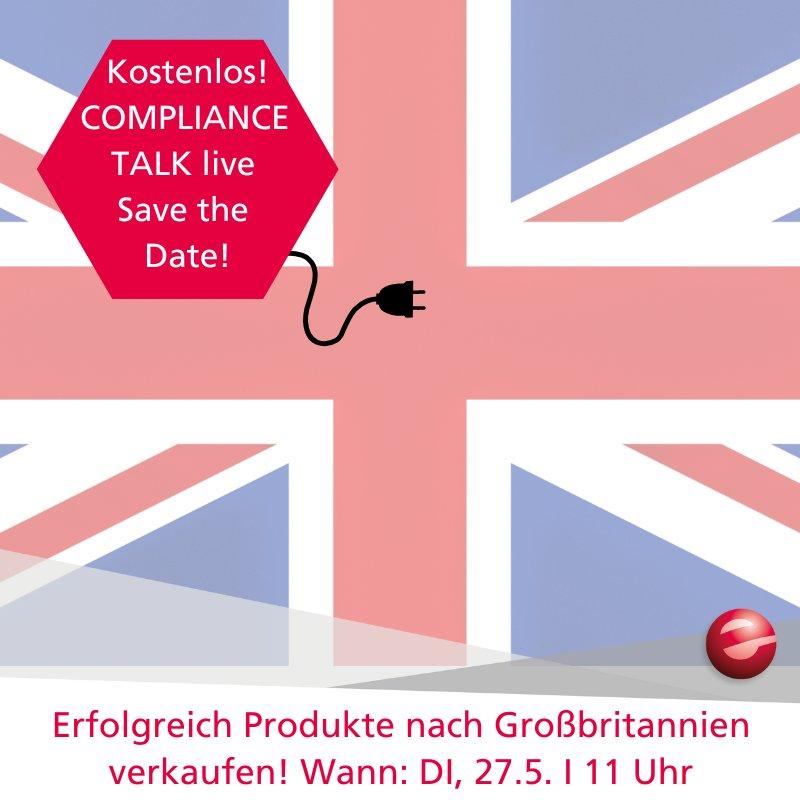 Donnerstag, 27. Mai, 10:00 – 11:00 Uhr CEST, kostenloser Compliance-Talk: Erfolgreich Produkte nach Großbritannien verkaufen!