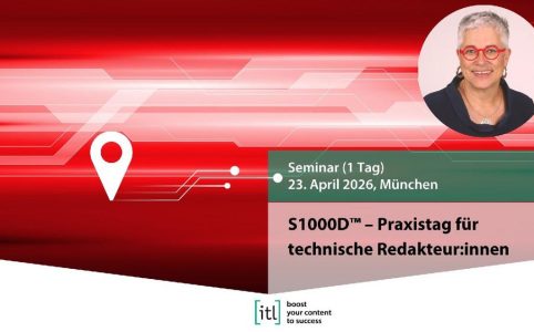 Grundlagenseminar zur Spec ASD S1000D™21. bis 22. April 2026, MünchenReferentin: Pia Grubitz Sie sind Technischer Redakteur und möchten zum erst...