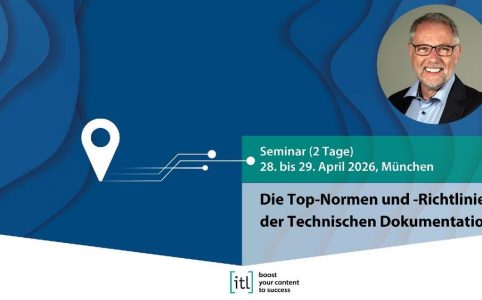 Die Top-Normen und ‑Richtlinien der Technischen Dokumentation28. bis 29. April 2026, MünchenReferent: Dieter Gust Das 2-tägige itl-Normenseminar gibt ...